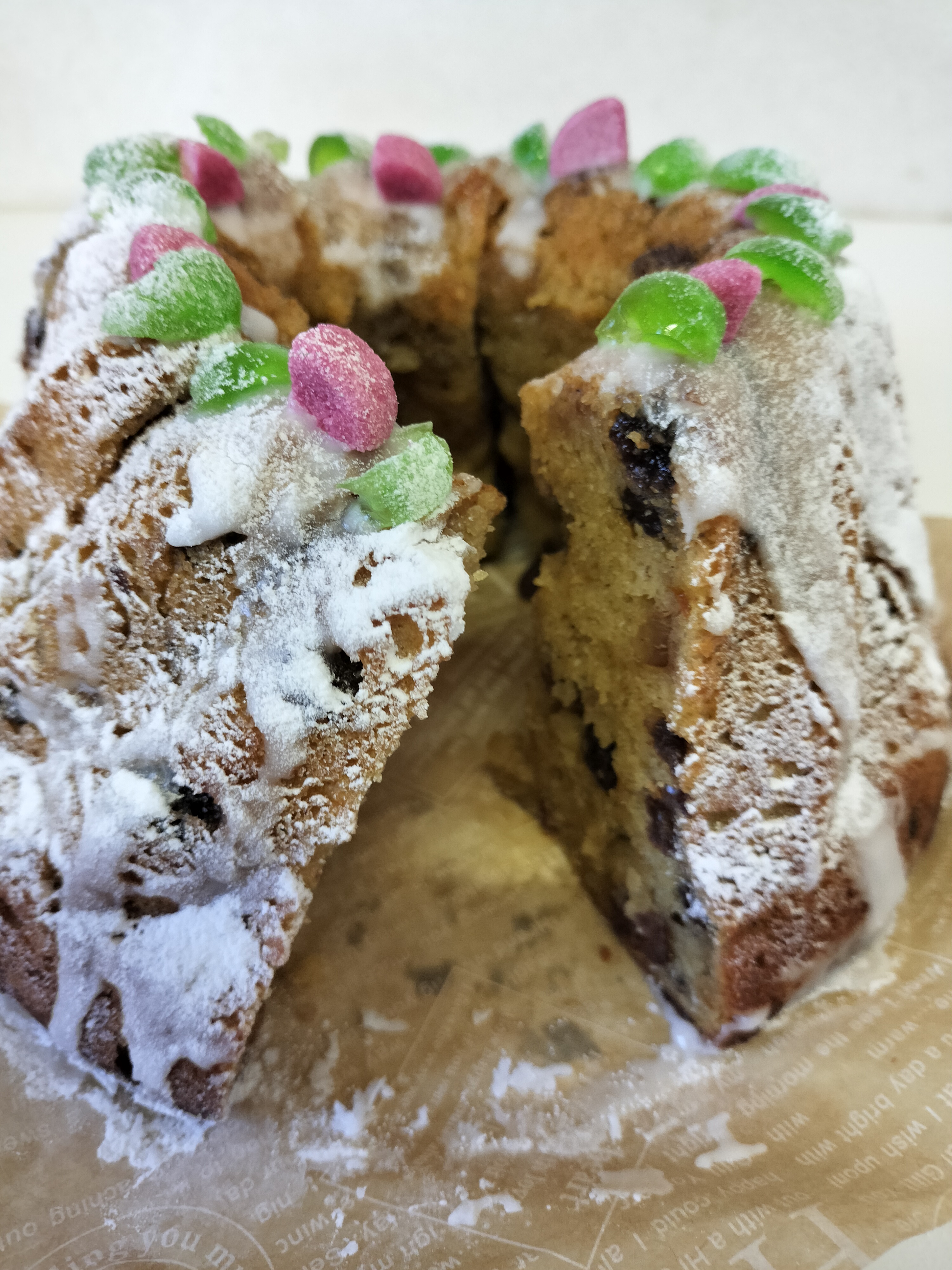 新商品 2025.12.08 クリスマスクグロフ ¥420(1カット) 毎年恒例のママのぱんやのクリスマス商品 1ヶ月ほど漬け込んだラム酒漬けフルーツ たっぷりの天然酵母ぱんです 風味の良いしっとり生地です
