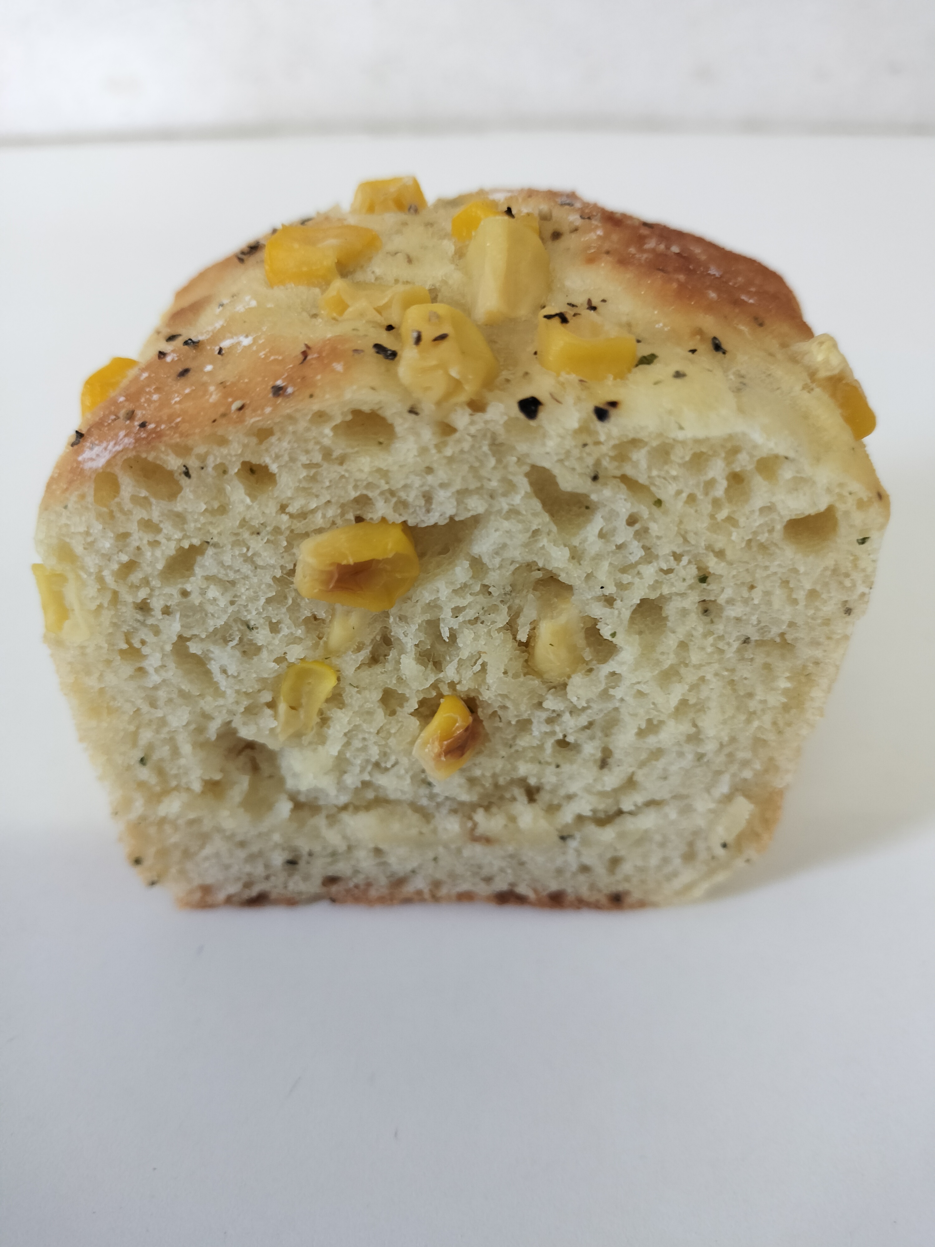 新商品 2024.07.11 コーンブレッド 1カット¥240 食べやすいコーンミールと粒コーン、よつ葉バターを 練り込み型に入れ焼き上げました。 型焼きでしっとり感をだし、 コーンの旨み甘みを感じる 夏の味です。
